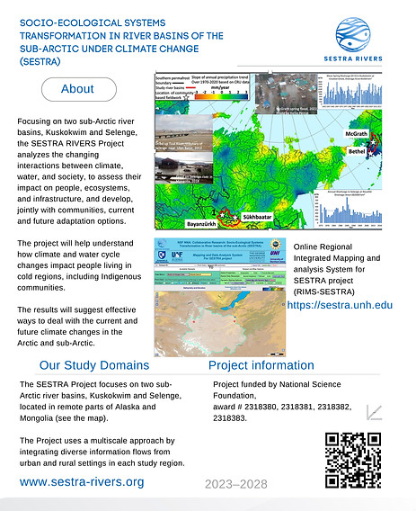 The Arctic and sub-Arctic are experiencing climate-induced environmental change alongside substantial social, economic, and institutional changes. This project seeks to analyze complex, dynamic linkages between different components of the changing hydroclimatological and social systems to improve our understanding of socio-ecological system (SES) interactions, assess their combined impact on human well-being, and co-develop current and future community adaptation options. This research, conducted by an interdisciplinary group, will advance understanding of linked hydroclimatic and human processes in the Arctic by: a) identifying and analyzing changes in hydroclimatological components of the natural system that affect human activities and ecosystem services, b) analyzing changes in riverine socioeconomic systems; c) conducting advanced community-engaged modeling based on the ecosystem services framework to understand interactions within the local and regional SES; d) exploring complex interactions and feedbacks within the SES; and e) providing scenarios for future SES changes and their impacts on ecosystem services and community adaptation options. The methodologies will combine transdisciplinary integration, engagement of Indigenous knowledge, multiscale analysis, and modeling, focusing on community- and stakeholder-engaged research, knowledge sharing, and implementing practical approaches to inter- and transdisciplinary challenges. This research will provide a set of plausible trajectories of human responses to climatic, social, economic, and political stressors developed for Alaskan and Mongolian regions and communities with implications for the broader Arctic and sub-Arctic. The project will involve Indigenous artists and develop an extensive training program for students and early career scientists.